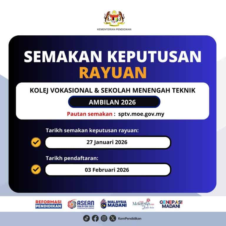 Tarikh & Cara Semakan Keputusan Rayuan Ke Kolej Vokasional / Sekolah Menengah Teknik Sesi 2026 / 2027