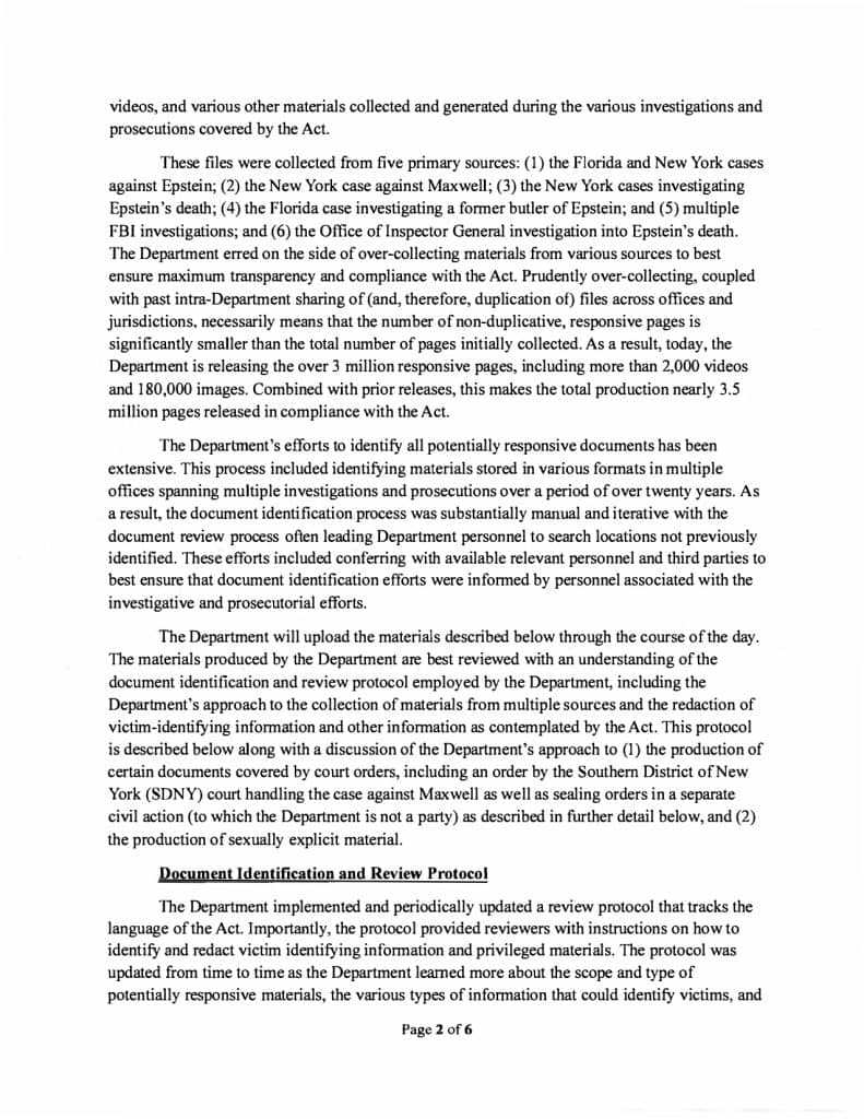 Penting untuk ditegaskan bahawa penyebutan nama dalam fail tidak bermaksud individu tersebut melakukan jenayah, sebaliknya menunjukkan mereka muncul dalam rekod atau keterangan berkaitan Epstein.